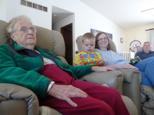 Me with Great-grandma Darlene and Max poking his head into the picture.
