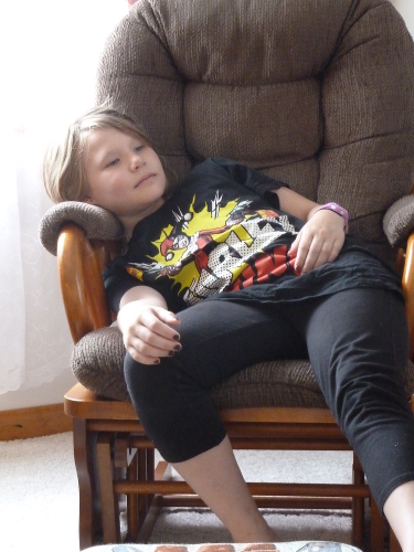 Daddy and I stopped to bring Great-grandma Dorothy a flower on our way home. She was surprised to see us. We didn't stay long because we had to get home. I almost made it all the way without falling asleep, but I woke up in my bed in the morning, so obviously I zonked out at some point.