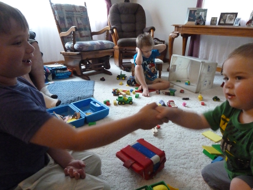 Sunday morning I rode with Grandpa Al in his blue truck, and then I went with Daddy and Grandma Wynne to see Great-grandma Darlene. Jenn was at her house, and Rhonda and Stevannah came down, and so did Kayla, Will, Gunnar, Yulia, and Vincent. And Bradley and Max came over - so it was a rather full house.