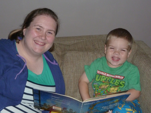 Reading a bedtime story with Auntie Kara.