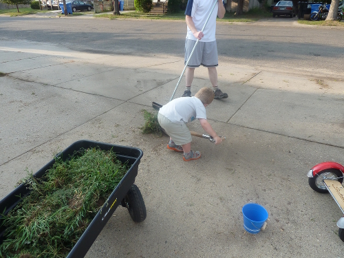 This week Daddy put me to work helping him clean up the weeds growing through the seams of our driveway (in case you are wondering, I begged to use the shovel):
