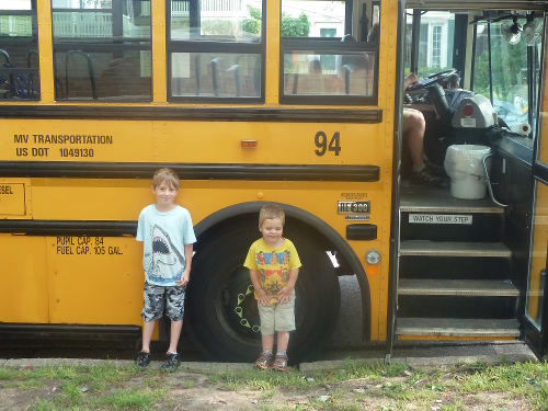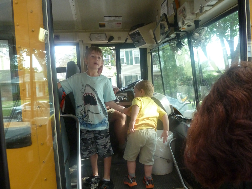 Me and Sawyer getting ready to ride the bus.