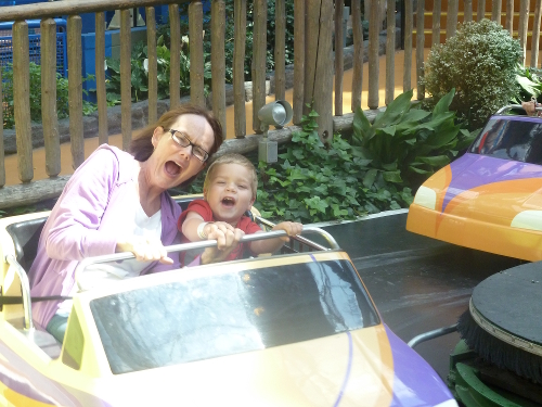 While Daddy was away, Mommy and I a lot of fun. First, we went to the amusement park at the mall with Grandma Gail.