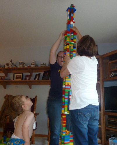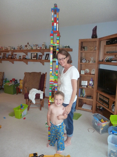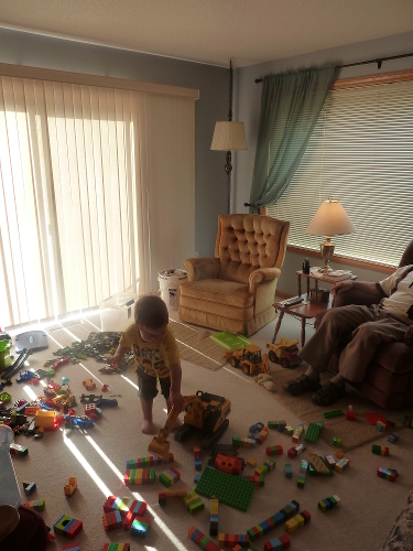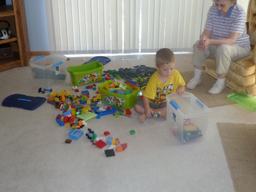 Mommy and I stayed with Great-grandpa Les and Great-grandma Muriel several nights while Daddy was gone. We played with LEGO and built towers and train tracks and had lots of fun.