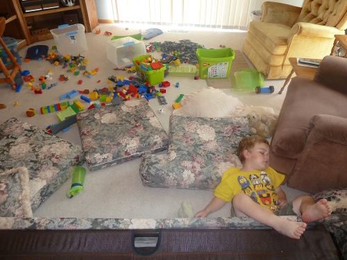 Asleep with my LEGO mess.
