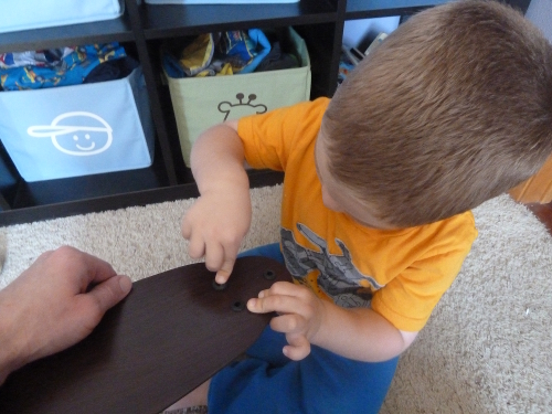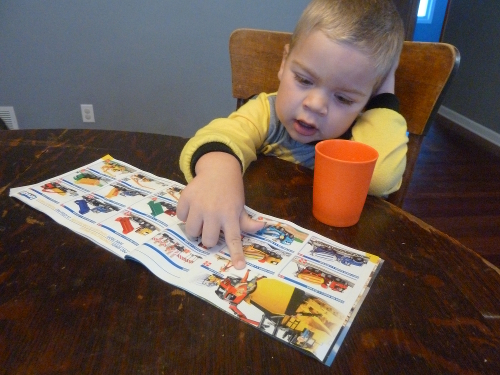 On Sunday Grandma Wynne, Grandpa Al, and Uncle Bill came over for the day. I played with my toys and showed Bill my LEGO and my trucks. While I was doing that, Daddy and Grandpa installed a ceiling fan in my room! It is so cool. I even got to help put some pieces on that looked like my LEGO tires.