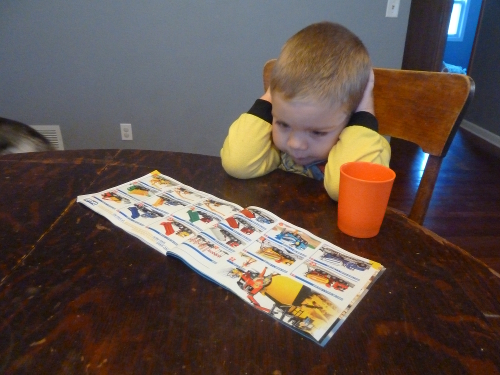 Other than that, I took it easy. I finally got a new bucket for my skid loader (thanks, Mommy!), and it came with something exciting: a catalog of all the new toys from Bruder!