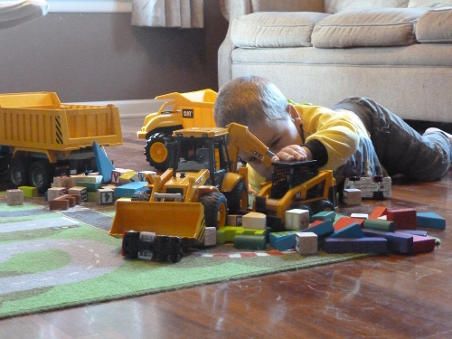 I spent a lot of time playing with my trucks and my blocks this week since the skid loader was able to scoop and lift things again.