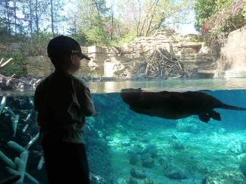 For the first time ever on one of my visits a beaver was actually out and swimming in his pool!