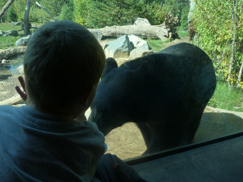 Saturday morning I went to the zoo with Daddy, Grandma Wynne and Grandpa Al. The weather was beautiful and the animals were much more active than usual - and they were out where they were easy to see. And there were babies! Baby porcupine, baby wolves, baby lynx, and baby snow monkeys - so many we didn't even get pictures of all of them. The grizzly bears were swimming and playing in their pool, right up by the glass - they were so much fun to watch!