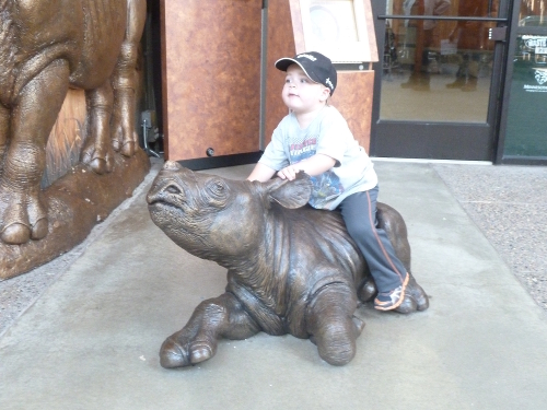 Me and a baby rhino (don't worry - it's a statue).