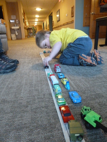 Wednesday morning we drove up to Kara and Josh's house. We walked through a snowstorm to get to the train, then went to the airport to get Kara and Josh's van - it was quite an adventure! After we got the van, we went to the mall and went on the rides and visited the LEGO store. The most exciting part was that I found Ms. Sally! I spent all my piggy bank money to buy a set of Cars toys with her in it.
