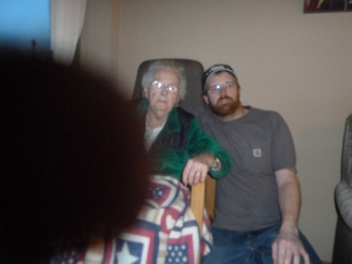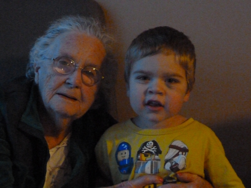 Sunday morning we packed up all our stuff and went home. Mommy stayed at the house and worked on her homework and Daddy and I went to get Duke from Grandma Wynne and Grandpa Al's house. Daddy and Grandma Wynne and I went to see Great-grandma Dorothy in her tower, and David and Diane were there, too!