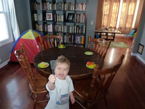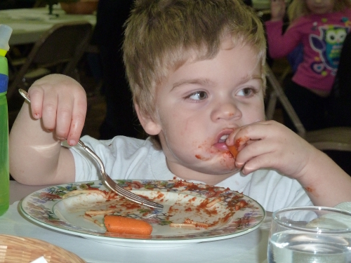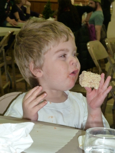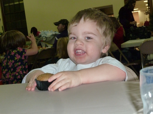 This week was pretty quiet around the old home place. Mommy worked on finishing up all her school work for the semester, I went to school, and Daddy went to work. Our big excitement came on Saturday, when we had a lot of visitors for the Children's Center Spaghetti Party to raise money for the science garden. GG, Great-grandpa Les and Great-grandma Muriel, and Grandma Wynne all came to go to the Spaghetti Party with us. Mommy made pumpkin cupcakes, brownies, vanilla mini-cheesecakes, and banana muffins to share with everyone at the party. During the day, I practiced setting the table amd making food in my kitchen.