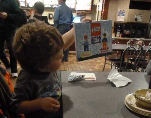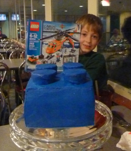 This week was Sawyer's birthday so we took him and Angie and his brother Carter out for supper. Mommy baked Sawyer a LEGO cake that was very blue - inside and outside! We gave Sawyer some LEGO for his birthday and he gave me some for Xmas - and he made a really cool picture of the two of us as LEGO guys.