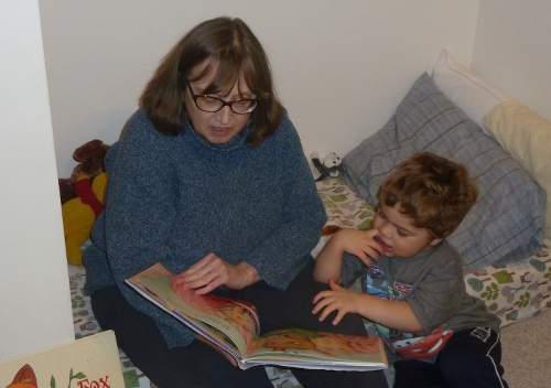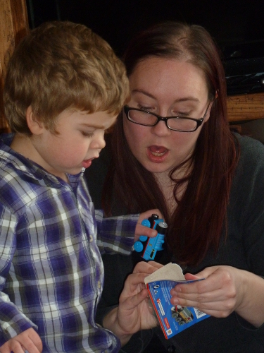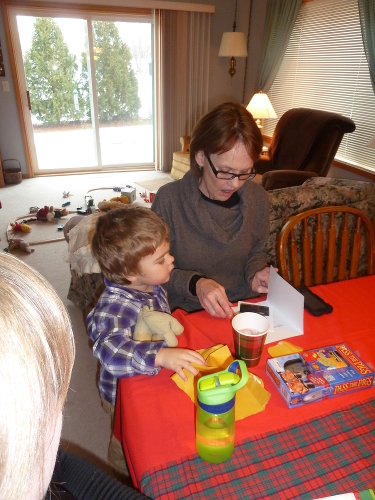 Mommy and I stayed at Great-grandma and Great-grandpa's Thursday night through Saturday afternoon. We played cards and trains and watched Thomas and Mighty Machines - we even ventured out in the snow for a little while.