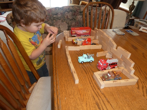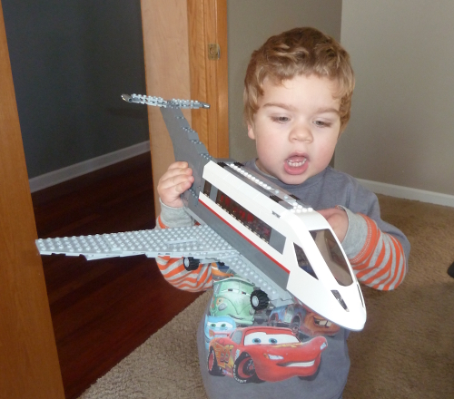 Grandma Wynne came to get us and drive us home on Saturday, and we got to see Daddy for the first time in a week! Mostly we played with LEGO, and Daddy built me a really cool airplane using part of my commuter train.