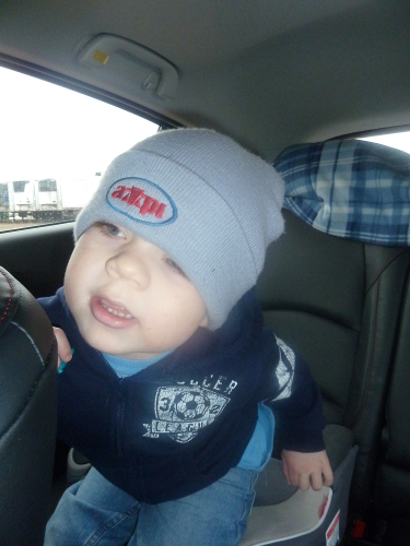 Waiting to ride in Grandpa Al's blue truck.