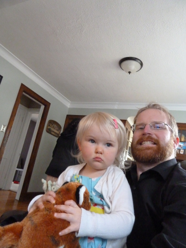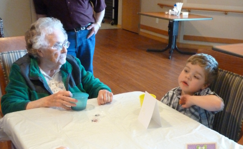 After the party, GG rode home with me and Daddy and we visited with Grandpa Kevin, Abby, and Max before going the rest of the way to Grandpa Al's house. Mommy went to have some fun with Great-grandpa Les and Great-grandma Muriel and Auntie Kara before joining us.