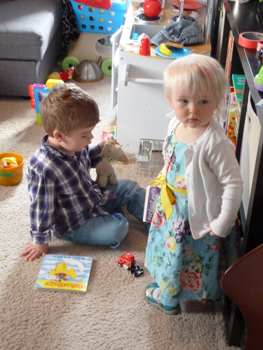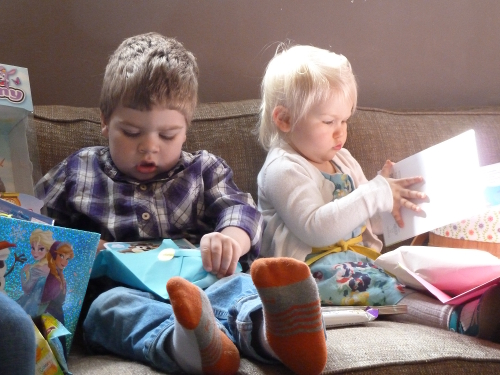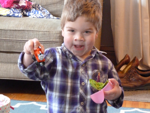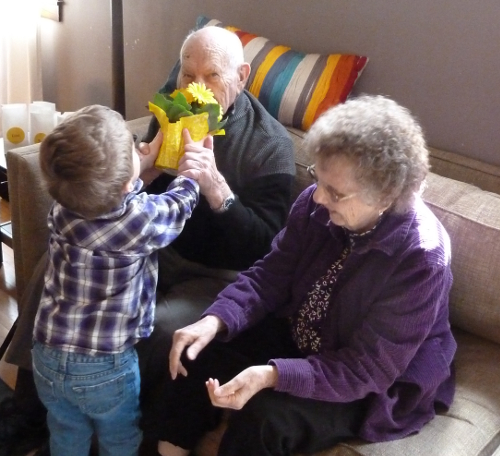 We were the first to get to Josh and Kara's, but then Nancy and Michael and Molly arrived, then GG with Great-grandpa Les and Great-grandpa Muriel. I played with Freya's toys - she has a kitchen like mine.