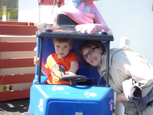 Riding in the tower - maybe for the last time. Daddy says I am getting too fast to ride inside.