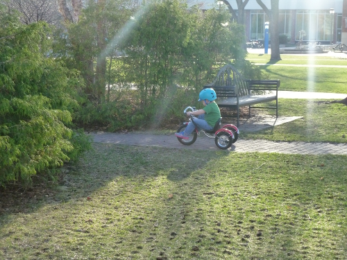 Daddy took Duke for a walk and then Daddy, Grandpa, and I went to ride my bike on campus. That was fun. You can bet I will be doing that again.