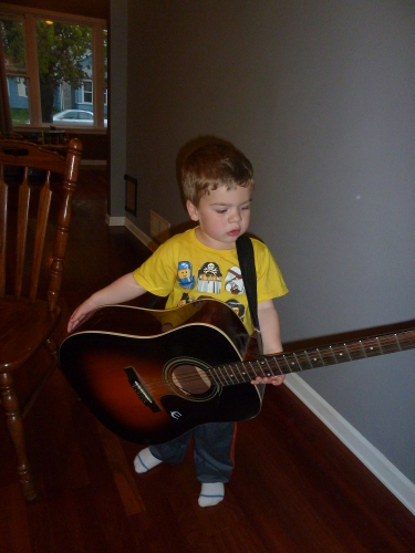 And we had another game night, and one of our guests gave me his old guitar. It's pretty cool. Grandpa Al had to replace one of the strings, but now I can play Folsom Prison Blues on it.