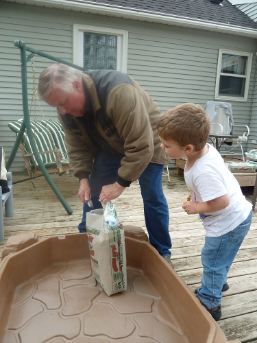 I got a sandbox at Grandpa Al and Grandma Wynne's house.