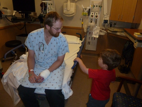 Then we went to see Daddy in the emergency room. He went in because his chest hurt and they made him stay overnight to run a lot of tests. But he's okay - the doctors didn't find anything wrong with his heart.