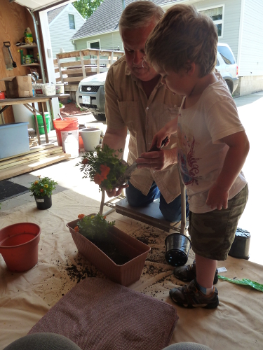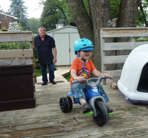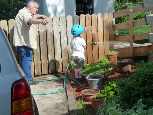Mommy and Daddy went on a trip for a few days, so I stayed with Grandpa Al and Grandma Wynne. Grandpa put me to work.
