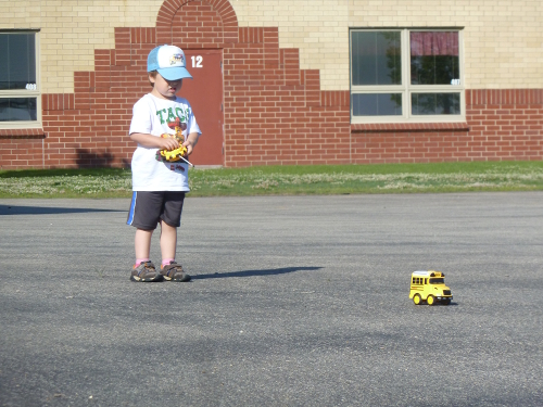 Daddy had to work on Friday, but Mommy came to get me. We went to Grandma Wynne's work and Bea gave me another bus - Yay!