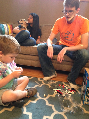 Thursday night we went to Josh and Kara's and Michael helped me build my new space shuttle set.