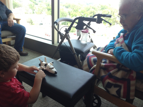 We stopped at Grandpa Al and Grandma Wynne's to pick up Duke, and made a side trip to see Great-grandma Dorothy.