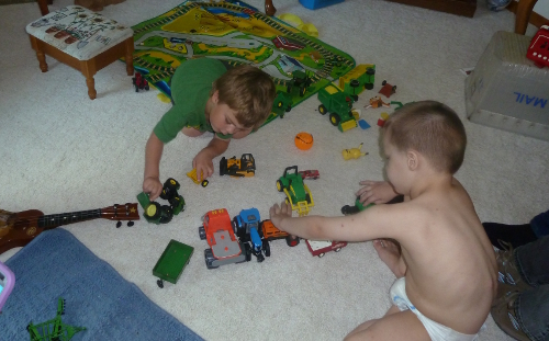 We also went to visit Great-grandma Darlene and I played tractors with Vince.