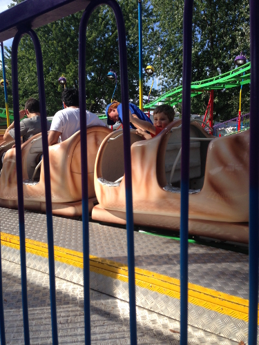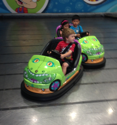 Sunday morning we went to the amusement park at the mall. It was very crowded so I didn't get to go on a lot of rides, but I went on the trucks with Freya, the big roller coaster with Mommy, the bumper cars by myself, and the Log Chute with Mommy and Daddy - we got a little wet. After all that we had some lunch in the new food court and ate some frozen yogurt in our secret spot.