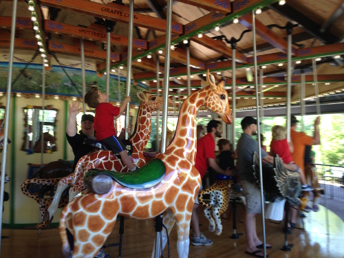 Monday morning we went to the zoo! Thankfully it wasn't raining and it wasn't hot. We saw the bears playing in the water and two big tigers. I got to ride on a camel with Mommy and ride on the carousel with Kara! Daddy and I walked over to the farm and rode the tractor back, then we had some lunch.