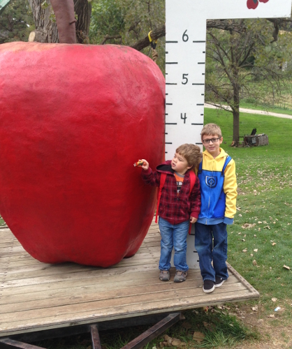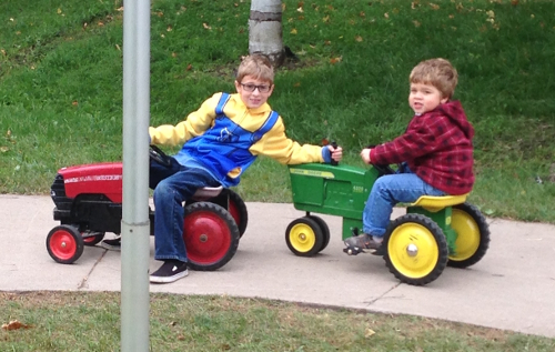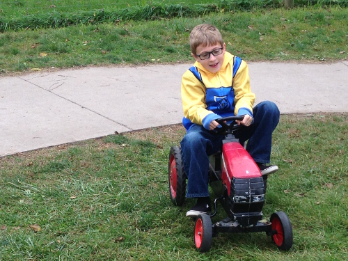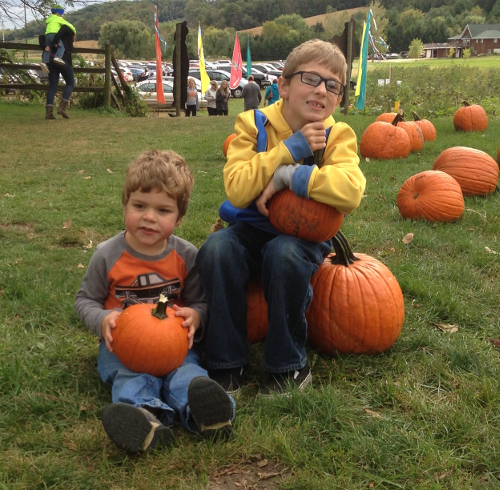 Sunday we went to the apple orchard with Sawyer and Angie. It was lots of fun. We rode the wagon up the hill to pick apples, we raced the pedal tractors, we ate some apples and some yummy snacks, and we picked out pumpkins!