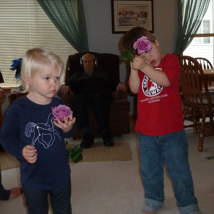 Playing with the flowers we got GG for her birthday.