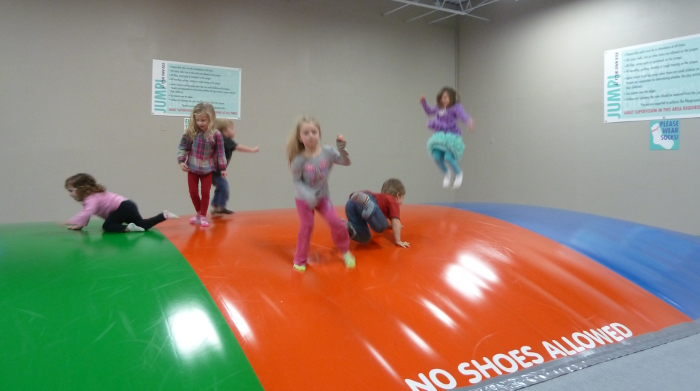 Jumping on the big ballon/pillow-thingy.