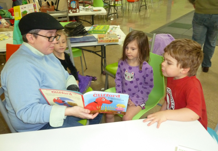 A little storytime at the party with Clifford the Big Red Dog!