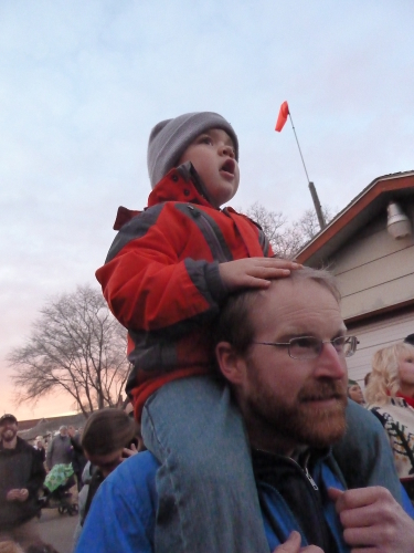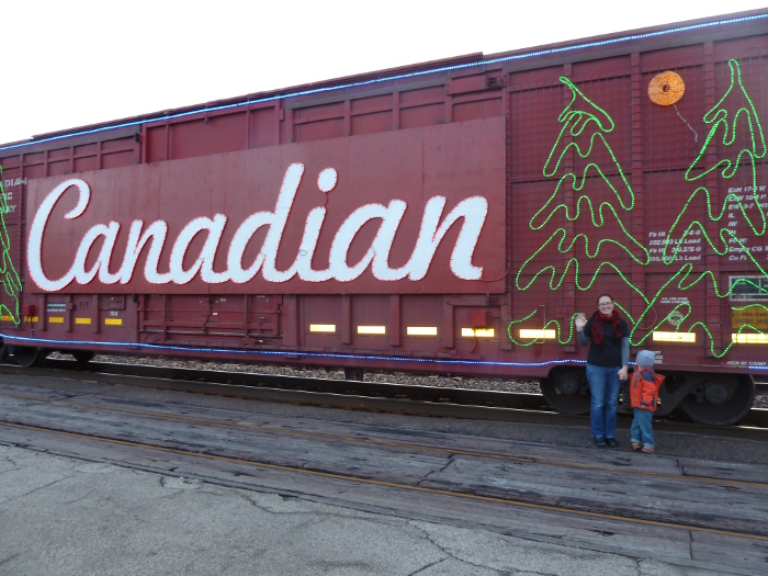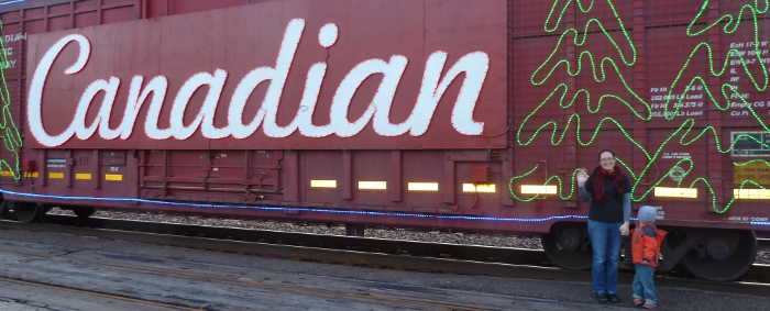 This week the Holiday Train came to our town! We went to see it after I was done with school. We even got to climb up on the engine! And there was a band playing music - but it was a little loud. We left at the right time and avoided the traffic jam - and we got to see the Holiday Train when it went past our house right after we got home!