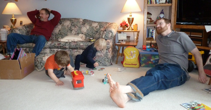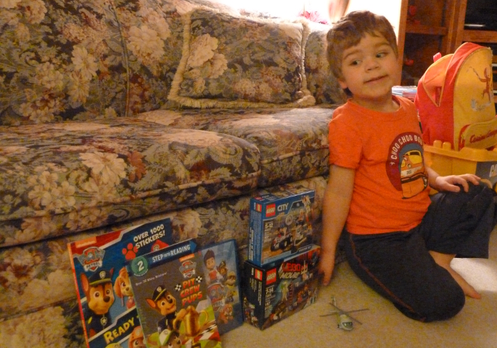 Sunday morning we went to visit Great-grandma Darlene and Jennifer again, and I got to play with Max some more (when he wasn't watching cartoons). After that, Mommy and Daddy went back home so they could go to work. And probably get trapped by a winter storm. I'll be playing with my new toys and watching PAW Patrol.