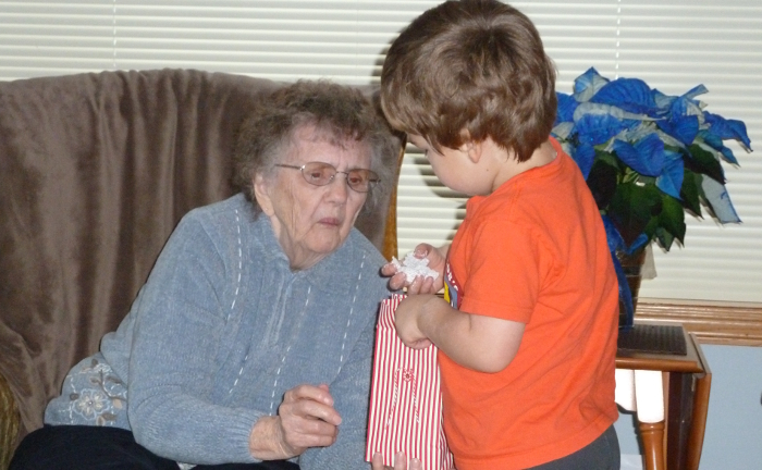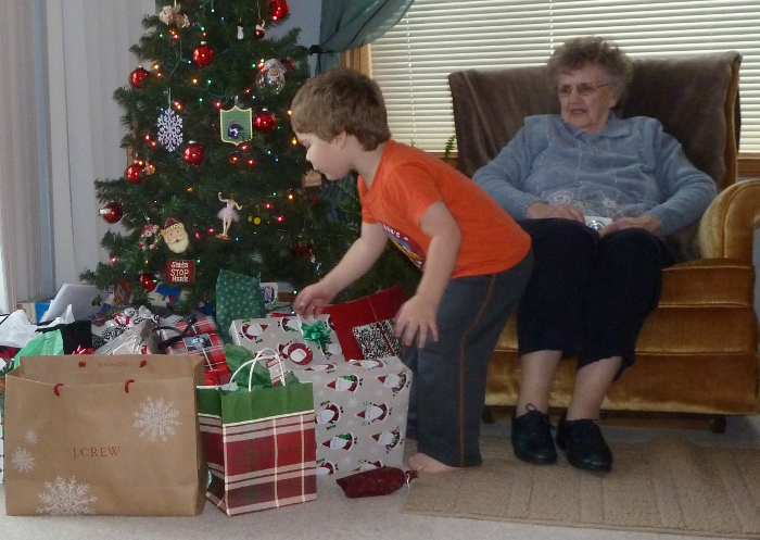 First stop was Christmas Eve at Great-grandma Darlene's house.