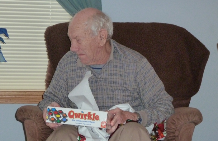 Grandpa Kevin is teasing me with the White Elephant gift GG chose.