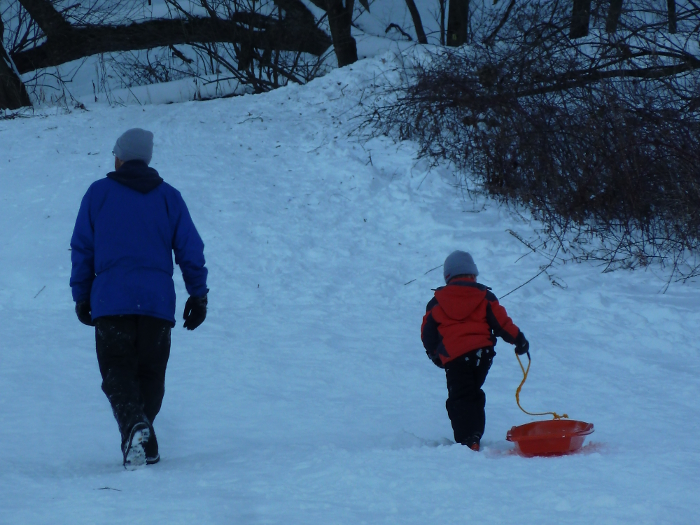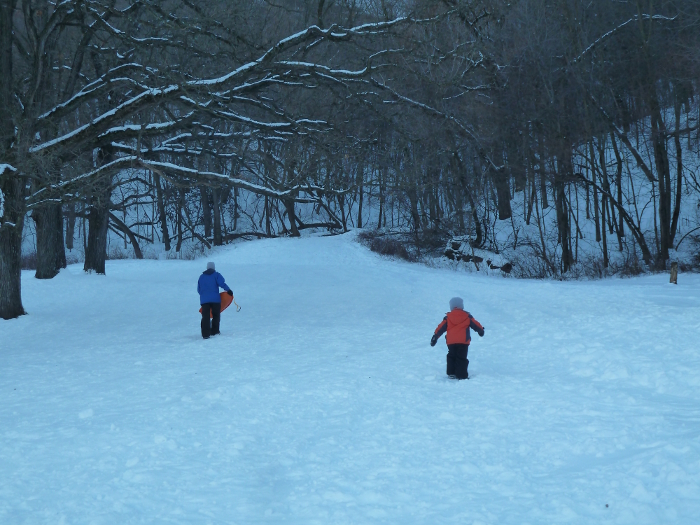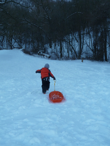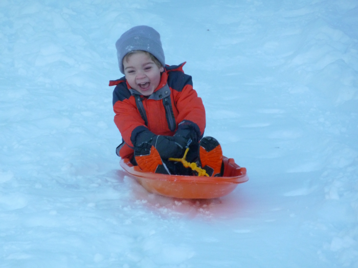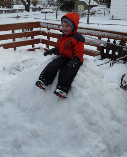 On Saturday we went home to be with Daddy. I had so much fun visiting everyone, but I missed my papa and I really wanted to start building all the awesome LEGO I got for Christmas this year. But since there was snow and the weather was nice, we decided to go have some fun outside right after we got home: