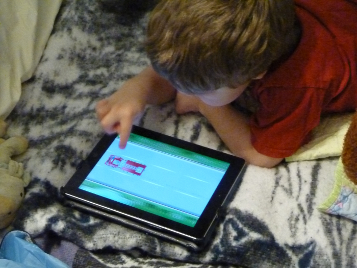 Playing a game on Grandma's iPad.