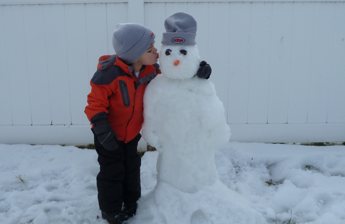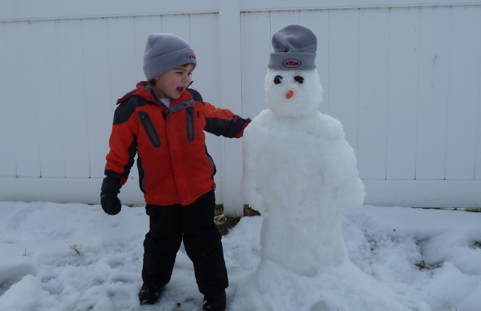 We didn't spend every minute inside. We did go out for a little bit since the weather was nice. We worked on my snow fort and Daddy made a snow Henry!