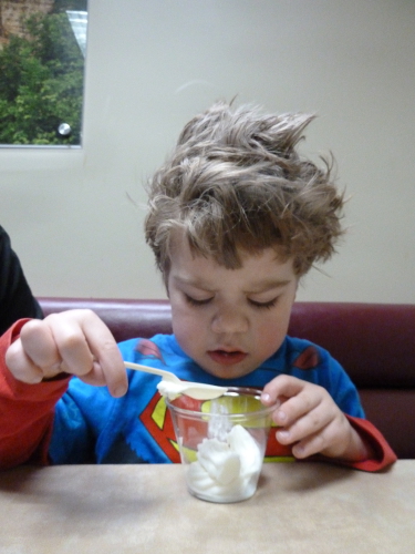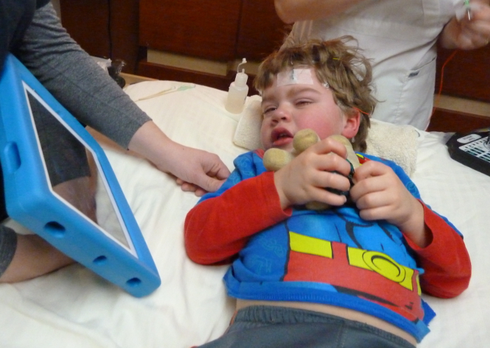 This week I had an EEG and I had to stay up all night! Mommy and Daddy barely made it. I was fine except for the ride in the car to the town where the appointment was. Once we were at the restaurant where we had breakfast I perked up.