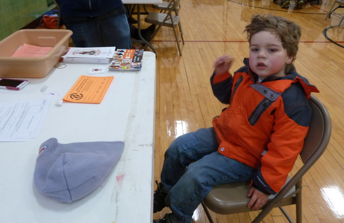 After the registration we met Angie, Sawyer, and Kyra at Godfather's for supper. And then my friend Aiden and his family came in and sat next to us - so that was a lot of fun.