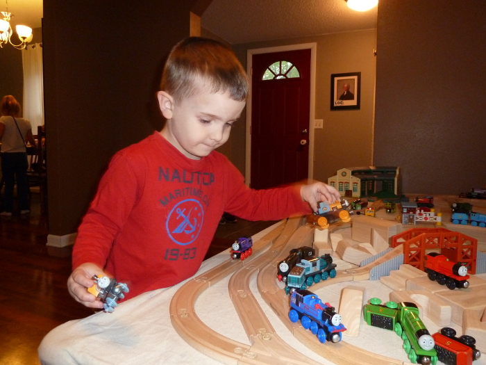Garrett at my train table.